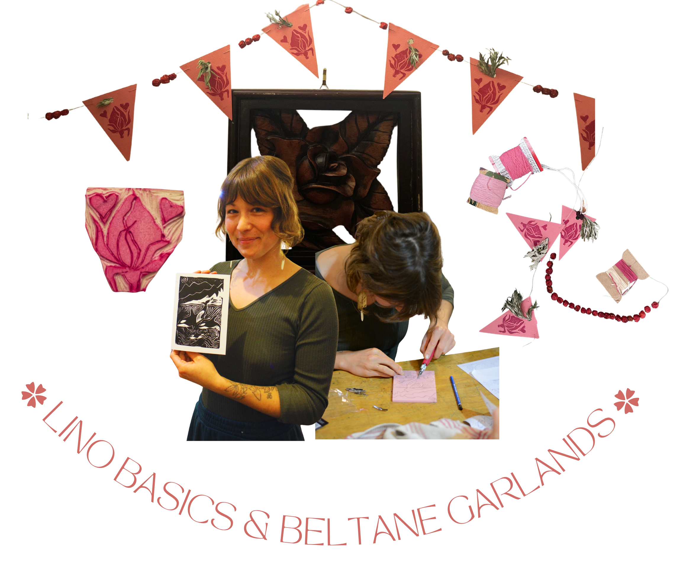 Eden loves to combine art with ecological thinking. This class merges our love for plants with an intro to lino making. By creating a garland, we celebrate the celtic Beltane festival by infusing our homes with spring.